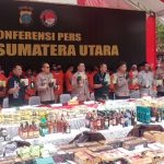 Kapolda Sumut Irjen Whisnu Hermawan Februanto bersama para PJU memperlihatkan barang bukti