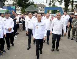 Gubernur Sumatera Utara Bobby Nasution (tengah) memberikan peryataan usai menghadiri RUPSLB Bank