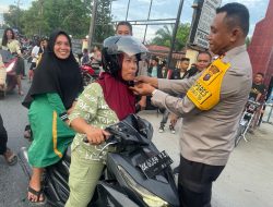 Sambut Bulan Suci Ramadhan, Polres Tanjung Balai Bagikan Helm SNI Gratis dan Sembako kepada Warga Daerah|Senin, 11 Maret 2024oleh redaksi1 Tampak pada gambar Kapolres Tanjungbalai AKBP.Yon Edi Winara SH.SIK.MH,sedang memasangkan Hlem kepada