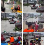 Personil Ditsamapta Polda Sumut wvakuasi rarga terdampak banjir di Medan, Kamis (27/11).(ist)