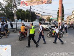 Dengan tugas yang ikhlas Personel Lantas Polres Tanjungbalai sedang menuntun seorang pelar