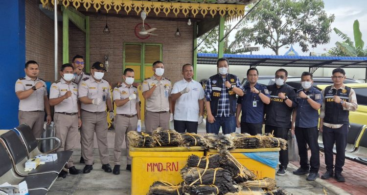 Cukai Teluk Nibung bersama Balai Besar Karantina Gagalkan Penyeludupan Kulit Biawak.(Ist) TANJUNGBALAI,INVOCAVIT.COM-Bea