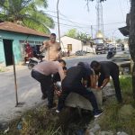 Personel Polsek Teluk Nibung membersihkan pemakaman umum dengan warga.(ist) TANJUNGBALAI,INVOCAVIT