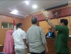 Tiga Saksi diambil sumpah sebelum dimulai sidang di PTUN Medan, Rabu (19/2).(jos