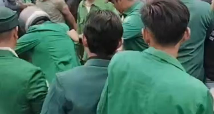 Salah satu massa aksi yang menderita luka usai diamankan petugas ke dalam