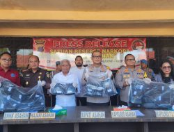 Dirnarkoba Poldasu Kombes Jean Calvijn Simanjuntak memperlihatkan Vape Liguid hasil pengungkapan di