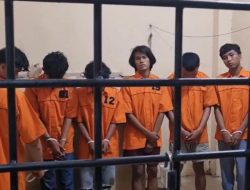 Para tersangka begal yang diamankan polis.(ist). MEDAN, INVOCAVIT.COM – Markas kawanan