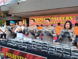 Kapolres Tebingtinggi, AKBP Andreas Tampubolon tunjukkan barang bukti 3 kilogram sabu saat