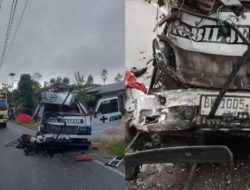 Mobil Ambulans ringsek ditabrak truk di Kab Humbag Hasundutan.(ist). HUMBAHAS, INVOCAVIT.COM- –