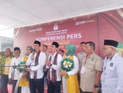 Faizal Amri-Raja Fatahillah didampingi istri dan pimpinan parpol pengusung konferensi pers.(abi).