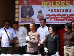 Tersangka dengan tangan diborgol duduk dikursi roda setelah kakinya dijebol peluru polisi.(ist)