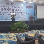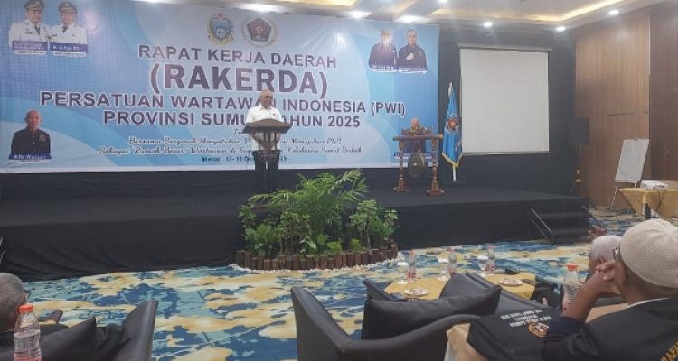 Ketua Umum PWI Akhmad Munir saat memberikan sambutan pada acara Rakerda PWI