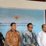 Anggota Komisi Percepatan Reformasi Polri, Mahfud MD didampingi Ahmad Dofiri memberikan keterangan