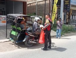 Personel Polres Labusel menggelar Jumat Berkat dengan membagikan nasi kepada penarik betor,