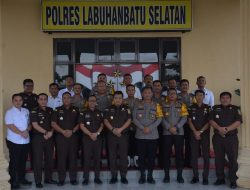 Kapolres Labusel, AKBP Maringan Simanjuntak perlihatkan barang bukti kasus narkoba tersangka Faisal