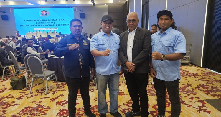 Kontingen PWI Tanjungbalai Poto bersama dengan Ketua Umum Ahmad Munir pada acara
