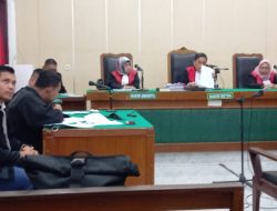Petugas sedang memasang plang sita di lahan seluas 105,98 hektar yang disita