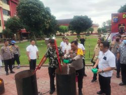 Kapolres Labuhanbatu AKBP Dr. Bernhard L. Malau, S.I.K., M.H saat memusnahkan barang