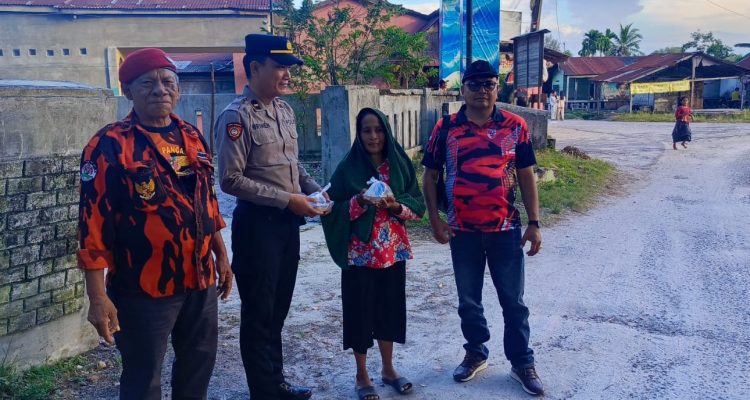 Wakapolres Sergai menyerahkan bingkisan lebaran kepada personil di Pos Pantau Pantai Cermin,