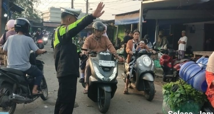 Personel Lantas Polres Tanjungbalai tampak sedang berjaga disalah satu titik badan jalan