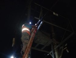 Petugas PLN memperbaiki travo yang mengakibatkan terjadinya pemadaman listrik di Kelurahan Sirandorung