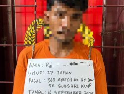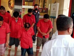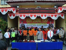 Ketiga tersangka bersama berbagai macam kartu ATM dan barang bukti hasil kejahatannya