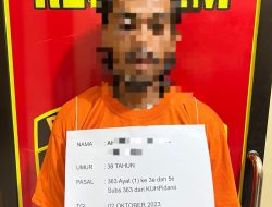 Tersangka diapit Polsi diruang periksa.(ist) TANJUNGBALAI,INVOCAVIT.COM-Bobol kantor Lurah Beting Kuala Kapuas,