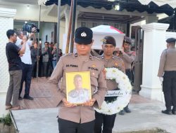 Personel Polres Tanjungbalai sedang mengusung peti Jenazah almarhum AIPTU.Edison Sitinjak mau di