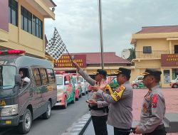 Tampak pada foto satu unit mobil ambulance sedang di lepas Kapolres Tanjungbalai