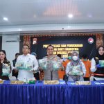 Kapolres Asahan AKBP Revi Nuraeni saat menunjukkan barang bukti pada press release
