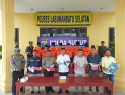 Ke 4 tersangka sindikat curanmor bersama barang bukti diamankan Polres Labusel.(ist).