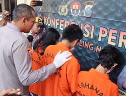 Kapolres Madinah memaparkan ketiga tersangka penganiayaan pengepul berondolan kepala sawit [ist]