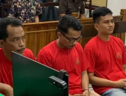Ketiga terdakwa kasus penggelembungan suara Pileg 2024 yaitu Junaidi Machmud (kiri), Muhammad