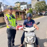 Personel Polres Labusel membagikan bendera Merah Putih kepada pengendara kendaraan bermotor.(ist)