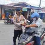 Kapolsek Teluk Nibung AKP.Rinaldi SH, MH, sematkan bendera kepada pengendara kereta.(ist)