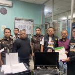 Samsul Tarigan bersama kuasa hukumnya di Kejari Binjai sebelum Dijebloskan ke Lapas