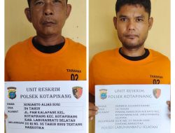 Kedua tersangka dengan tangan diborgol bersama barang bukti.(ist) TANJUNGBALAI, INVOCAVIT.