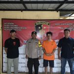 Petugas mengapit tersangka penggelapan sepeda motor.(ist) LABUSEL, INVOCAVIT.COM — Polsek Torgamba, Polres