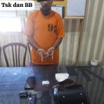 Tersangka dengan tangan diborgol bersama barang bukti.(ist) Tanjungbalai, INVOCAVIT.COM: Polisi datang