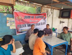 Kapolsek TBS Kompol.H.E.Sidauruk SH.MH.bersama anggota sedang berbagi dengan pengguna jalan.(ist)