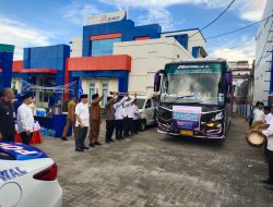 Kasat Polairud tampak sedang memberikan sembako kepada Nelayan yang melintas di Sei