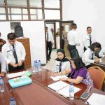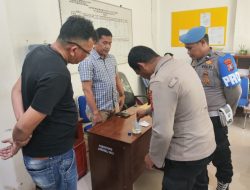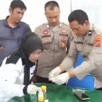 Personel Polres Labusel melakukan tes urine terhadap karyawan PT Rumbiya Estate, Senin