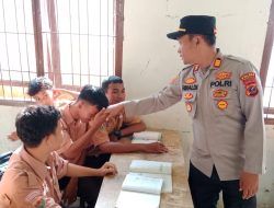 Kapolsek Teluk Nibung AKP Rinaldi sedang berbincang dengan para pelajar dalam acara