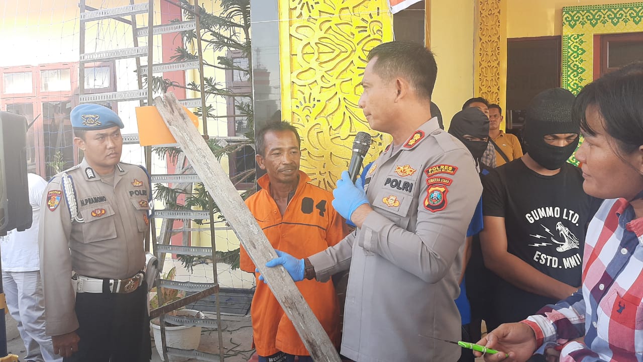 “Pelapor kembali lari dari dalam kamar usai pintunya di dobrak terlapor, pelapor lari dari kamar dan bersembunyi dibalik mertuanya. Bukan merasa segan, terlapor kembali mengambil kayu balok dan hendak memukul pelapor namun di halangi oleh mertuanya,”.