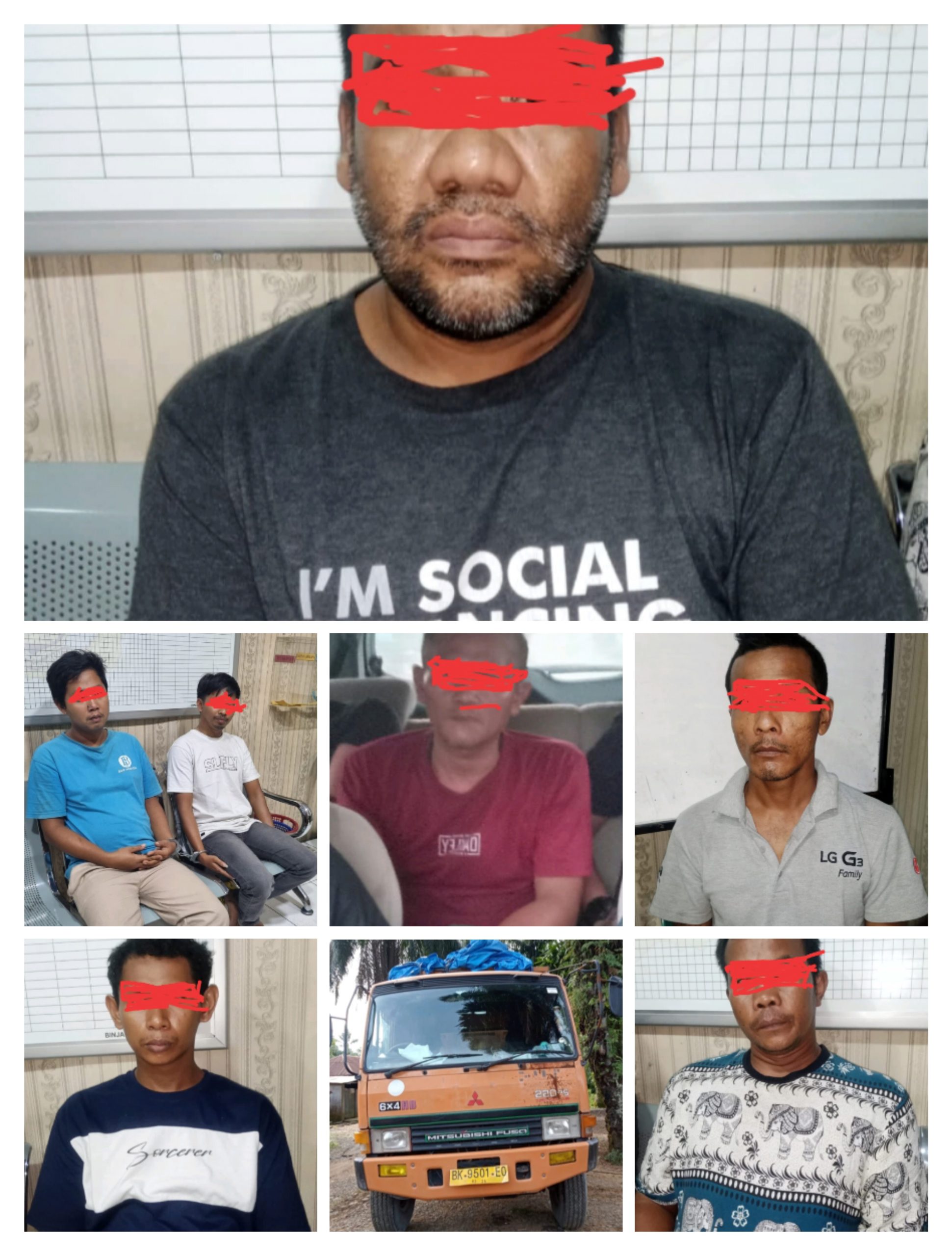 Para terduga pelaku yang diamankan dan truk yang digadaikan (ist).