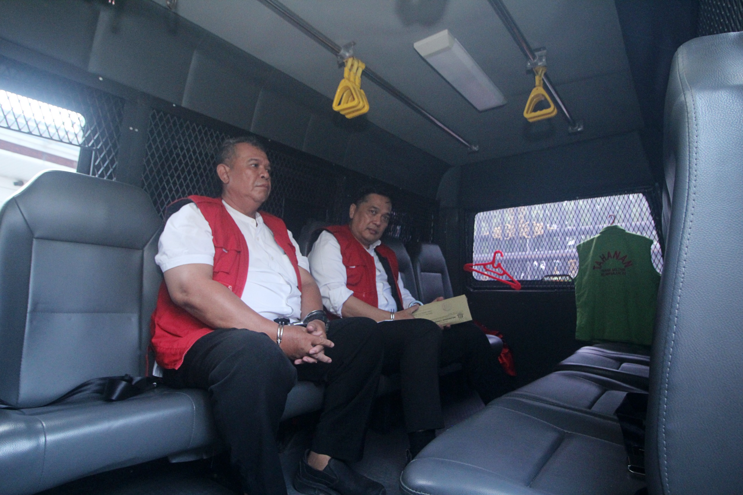 Tersangka Sekdiskes Sumut dr Aris dan PPK saat berada di mobil tahanan.(ist)