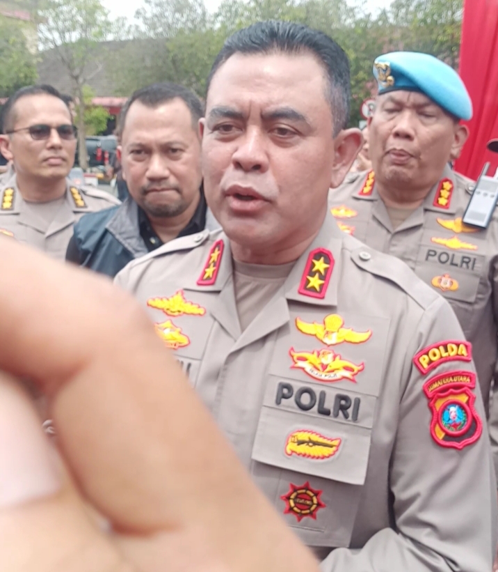 Kapolda Sumut Irjen Pol Whisnu Hermawan Februanto saat diwawancarai wartawan, Selasa (3/6) usai pres relise pengungkapan narkoba.(Foto. Jos Tambunan)