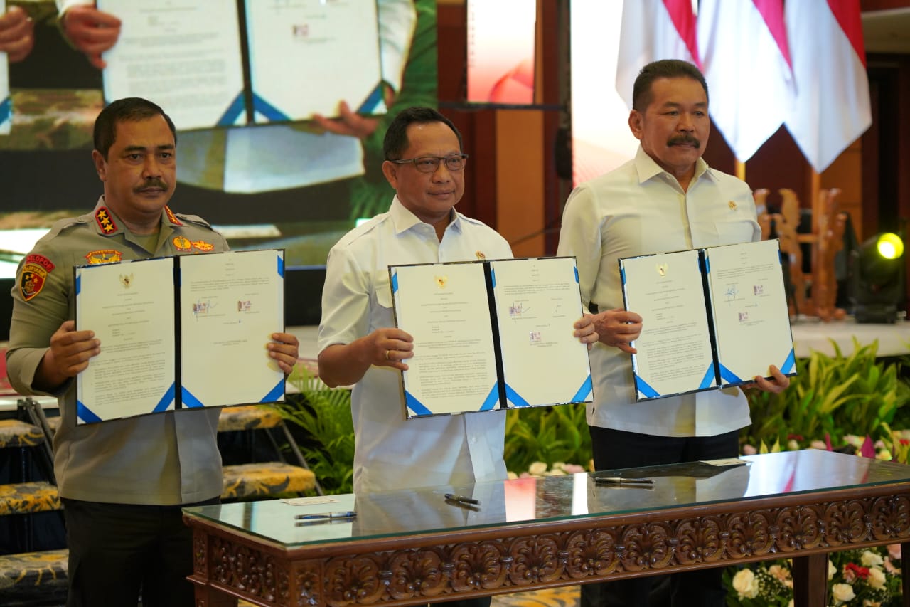 INVOCAVIT.COM, JAKARTA – Menteri Dalam Negeri, Polri dan Kejagung menandatangani nota kesepahaman tentang Penanganan Laporan atau Pengaduan dalam Penyelenggaraan Pemerintah Daerah, Rabu 25 Januari 2023 bertempat di Hotel Borobudur.