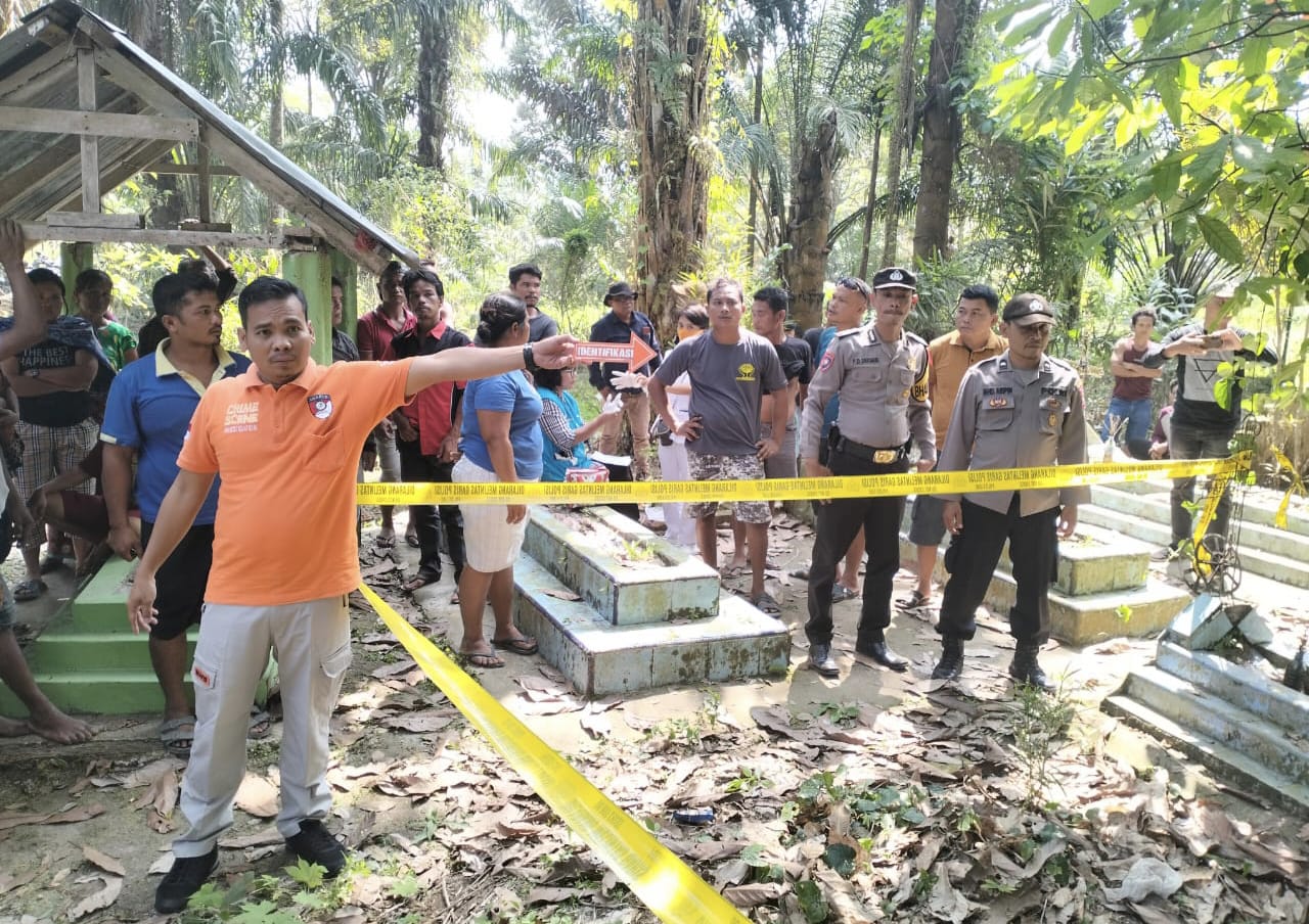 KOTARIH, INVOCAVIT. COM –  Kepolisian Sektor Kotarih Polres Sergai (Sumut) Olah TKP dugaan bunuh diri seorang pria RSP (31) di tempat pemakaman pribadi warga di Dusun l Desa Hutagaluh Kecamatan Kotarih, Sergai. Sabtu (17/03).