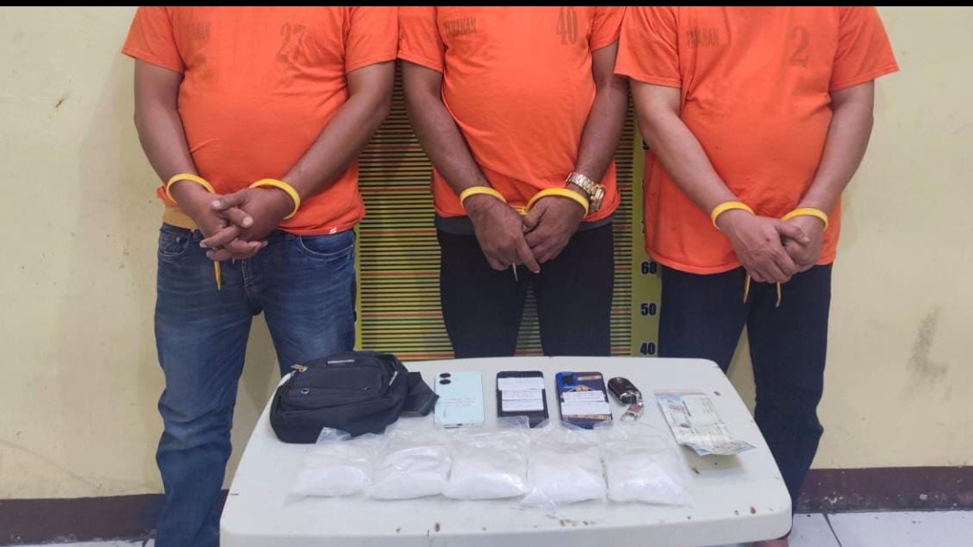 Dalam pengungkapan tersebut, tiga orang pria yang diduga terlibat dalam jaringan peredaran narkoba berhasil diamankan, yakni FR (40), JH (51), dan RY (40).